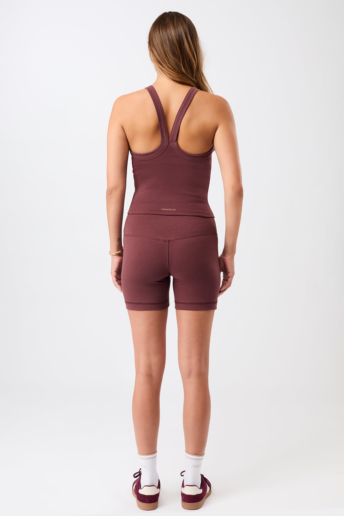 - Breite Träger, die hinten in einen Racerback übergehen